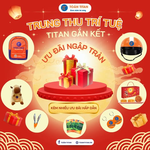 ✨ Trong ánh trăng đoàn viên, Trung Thu trở nên trọn vẹn hơn khi vừa có niềm vui học tập, vừa có món quà yêu thương. Toán TITAN gửi đến quý phụ huynh và các em học sinh chương trình ưu đãi đặc biệt, vừa học tập hiệu quả vừa nhận quà ý nghĩa