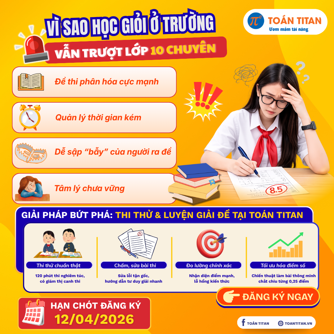 🔥 Chương trình THI THỬ & LUYỆN GIẢI ĐỀ TUYỂN SINH 10 tại Toán TITAN được thiết kế để giải quyết triệt để vấn đề này: