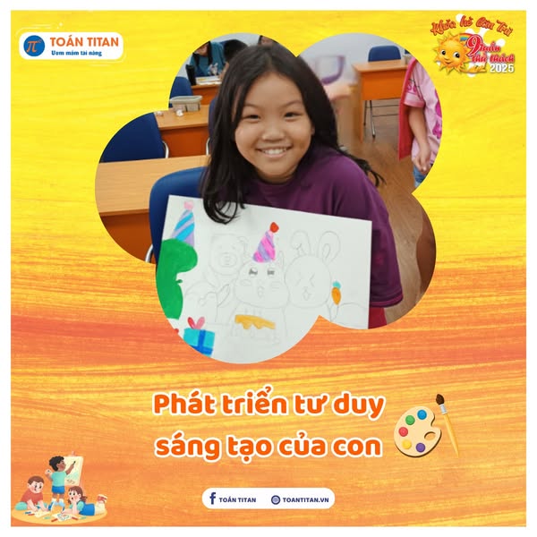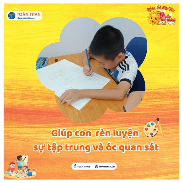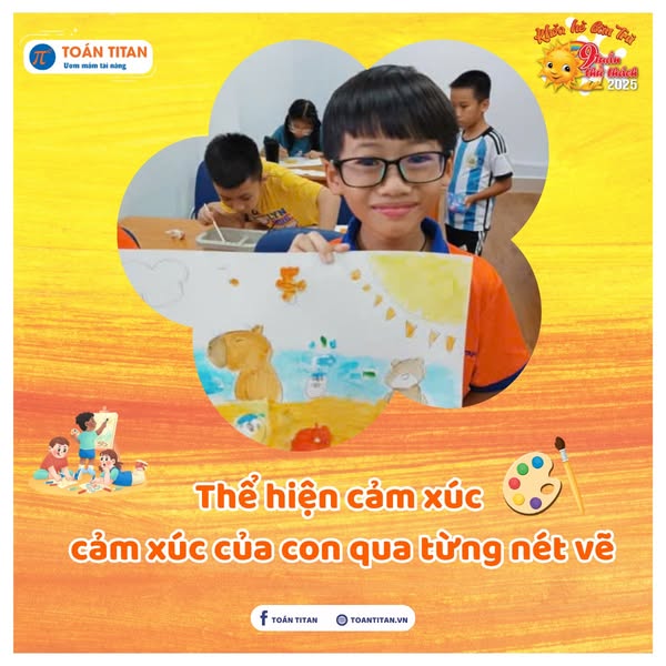 Tại Trung tâm Toán TITAN, lớp Mỹ thuật trong Khoá hè bán trú Hè 9 tuần thử thách chính là nơi con được tự do thể hiện chính mình qua sắc màu, hình khối và trí tưởng tượng phong phú của mình.
