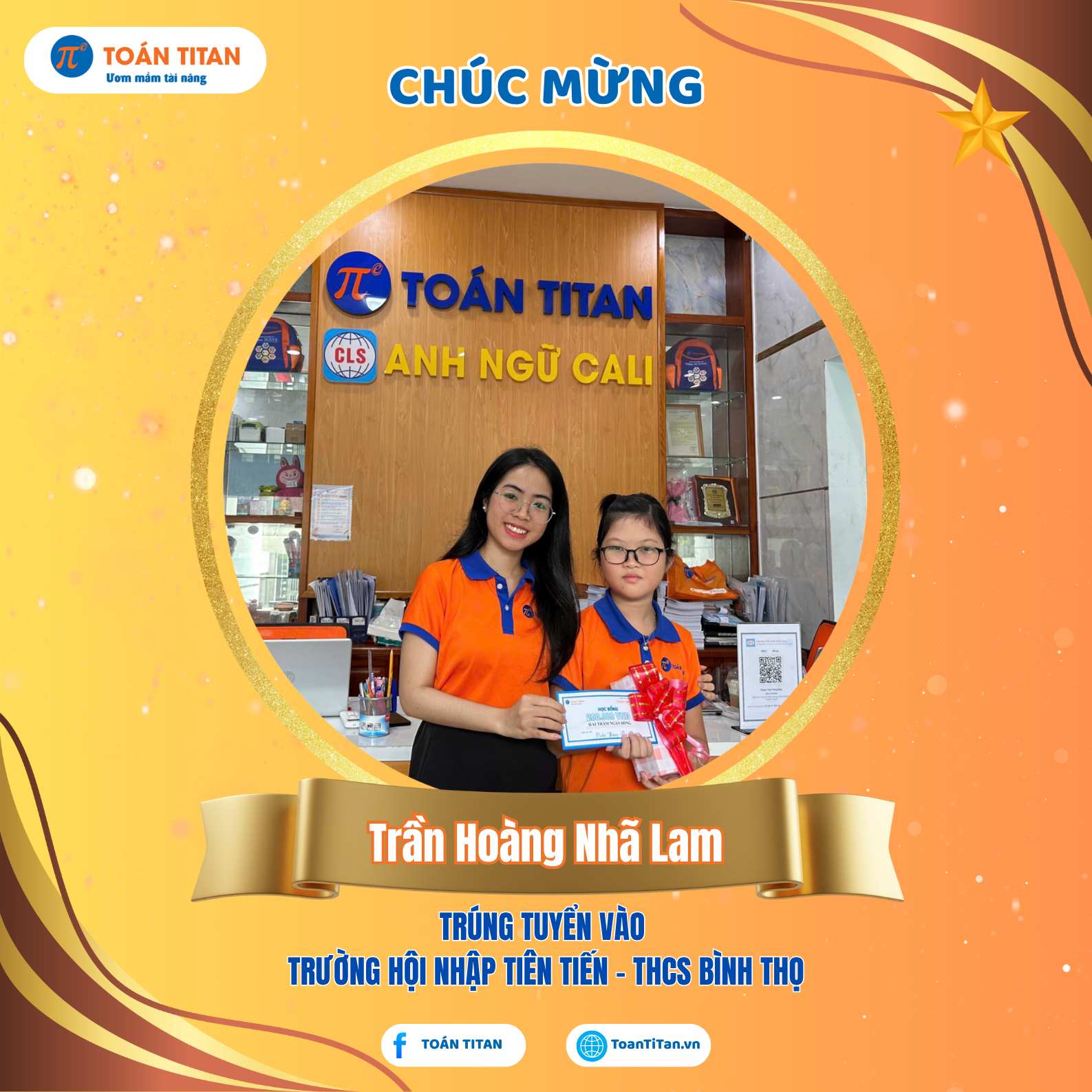 Toán TITAN xin chúc mừng hai bạn là Trần Hoàng Nhã Lam và Ngô Minh Khuê là học sinh lớp 5, đã xuất sắc vượt qua kỳ thi tuyển sinh vào lớp 6 của Trường THCS Bình Thọ, một trong các ngôi trường hội nhập tiên tiến tại TP. Thủ Đức.