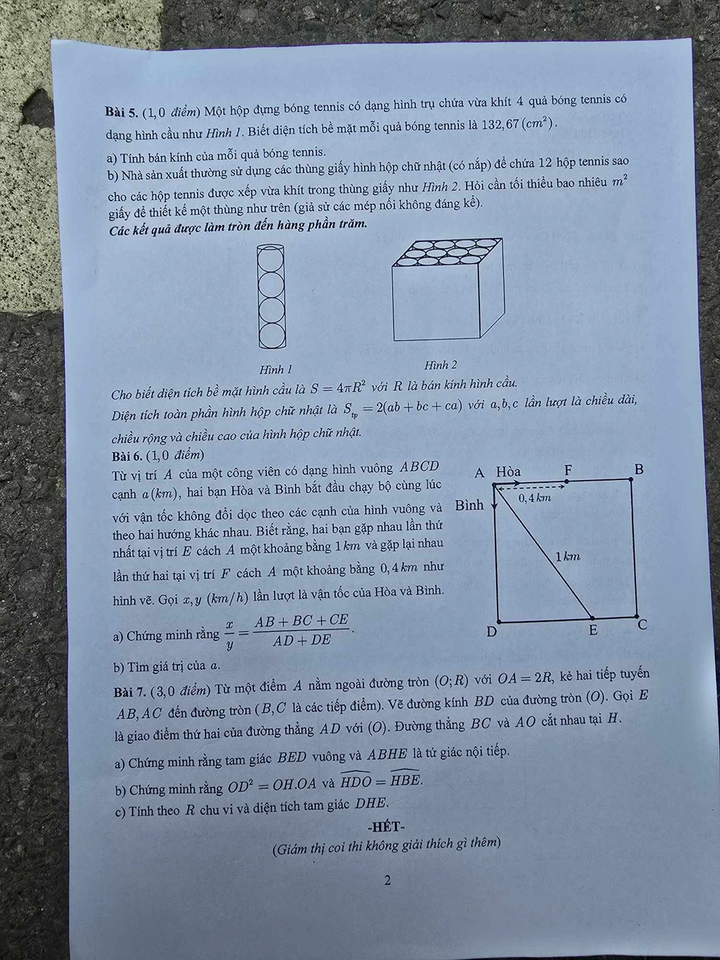 Theo thông tin từ Sở Giáo dục và Đào tạo TP.HCM, đề thi môn Toán năm nay gồm 7 câu hỏi. Trong đó, câu 1 và câu 2 là những bài toán quen thuộc, thuộc phần kiến thức cơ bản như đồ thị hàm số, hệ thức Vi-ét, và giải phương trình.