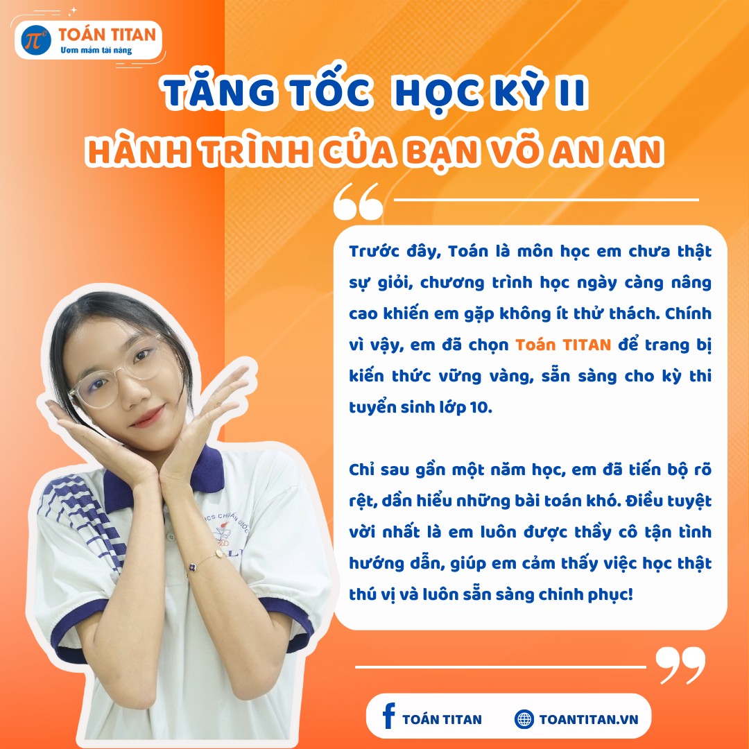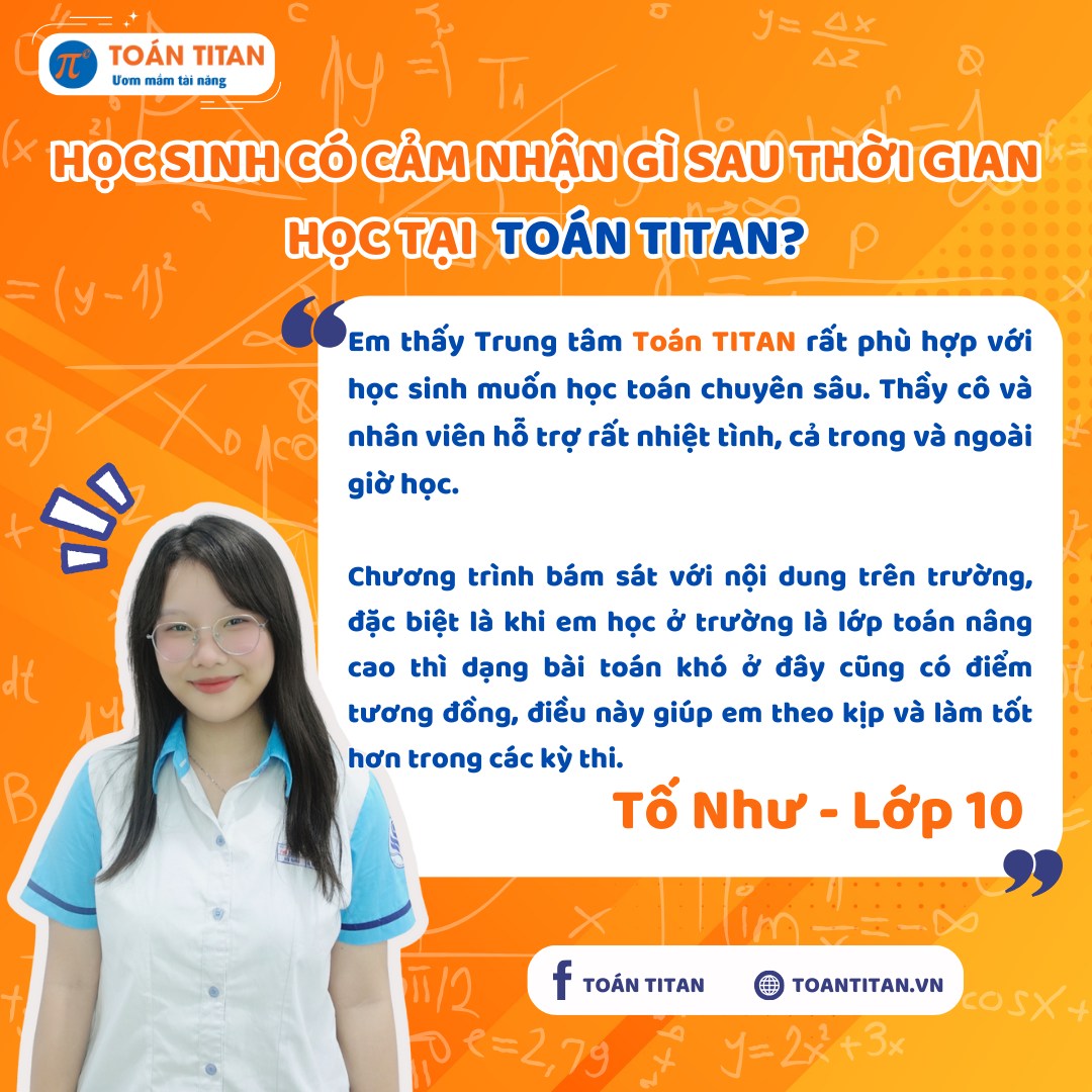 “Em thấy trung tâm rất phù hợp với học sinh muốn học toán chuyên sâu. Thầy cô Toán TITAN hỗ trợ rất nhiệt tình. Em đã tiến bộ hơn trong các kỳ thi.”