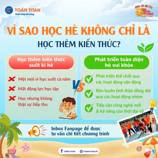 👉 Tham khảo ngay Khóa Hè 9 Tuần Thử Thách tại Toán TITAN để con có một mùa hè năng động, bổ ích và đầy cảm hứng. Tham khảo: https://www.facebook.com/share/p/1Cce3uCPWg/