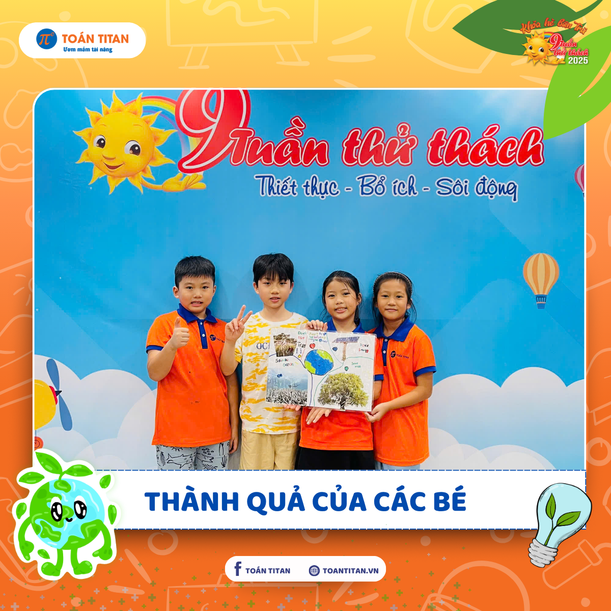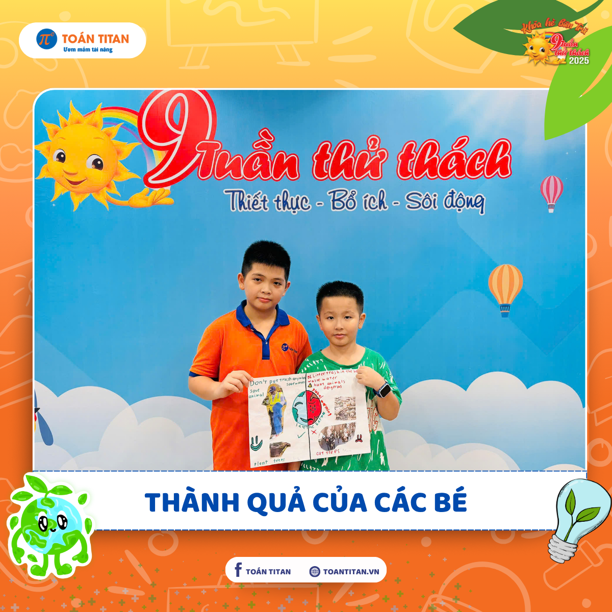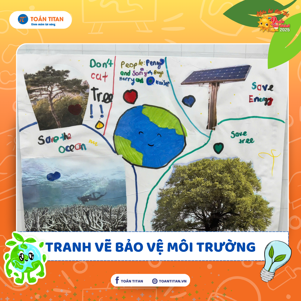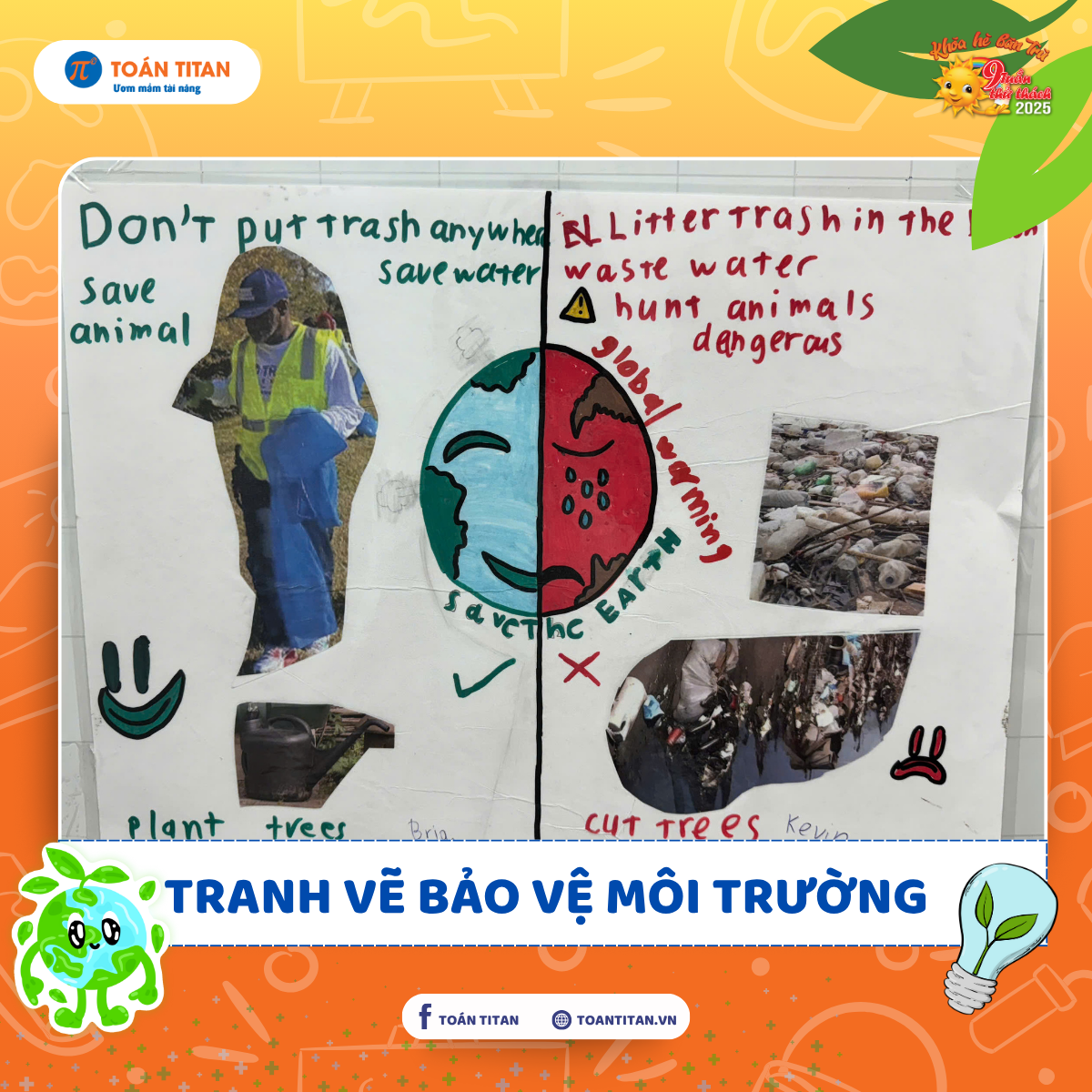 Trong tiết Tiếng Anh thuộc khóa 9 Tuần Thử Thách, các bạn nhỏ tại Toán TITAN đã có một trải nghiệm học tập vừa sinh động, vừa gắn liền thực tế đó là vẽ và cắt dán tranh theo chủ đề bảo vệ môi trường.