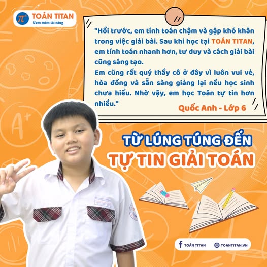 “Trước đây em tính toán còn chậm và gặp nhiều khó khăn khi giải toán. Nhưng sau khi học tại Toán TITAN, em đã tiến bộ rõ rệt. Em không chỉ tính toán tốt hơn mà còn phát triển được tư duy, sáng tạo và cách suy luận bài rõ ràng hơn.”