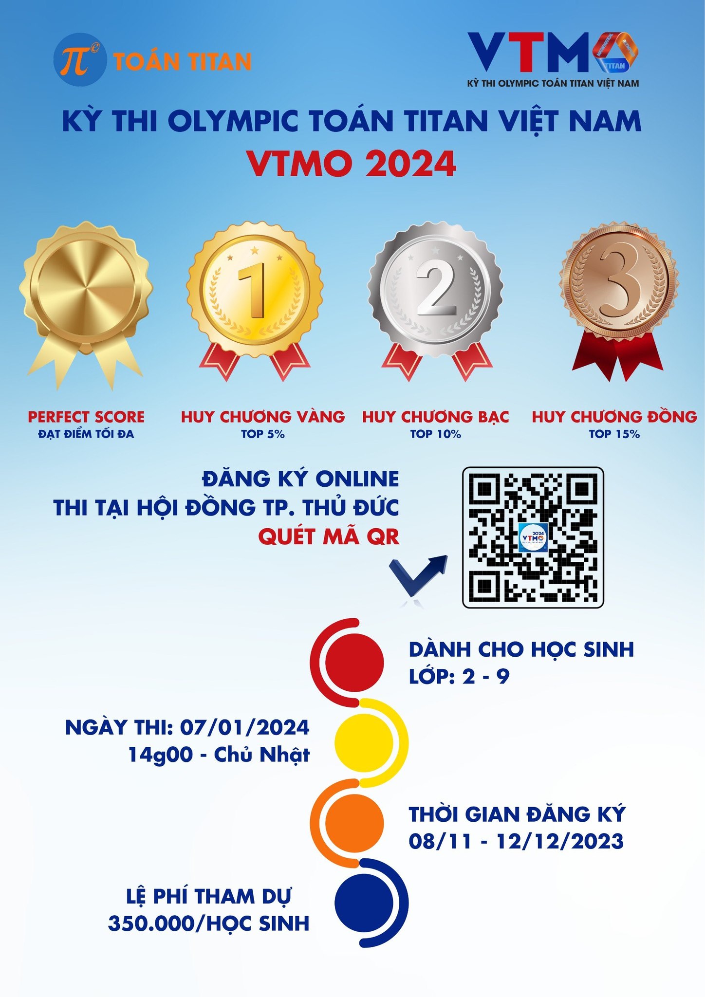 💯💯 Các bạn học sinh muốn thử sức với Kỳ thi Olympic Toán TITAN (VTMO) 2024, hãy nhanh chóng đăng ký tại đường link: